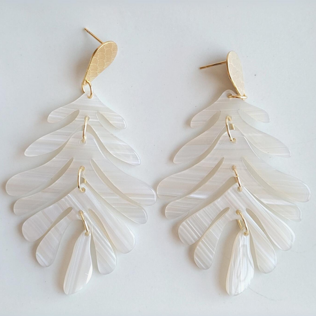 * 18k gold-plated hypoallergenic stainless steel posts with a laser cut design detail * Durable plant-based acrylic