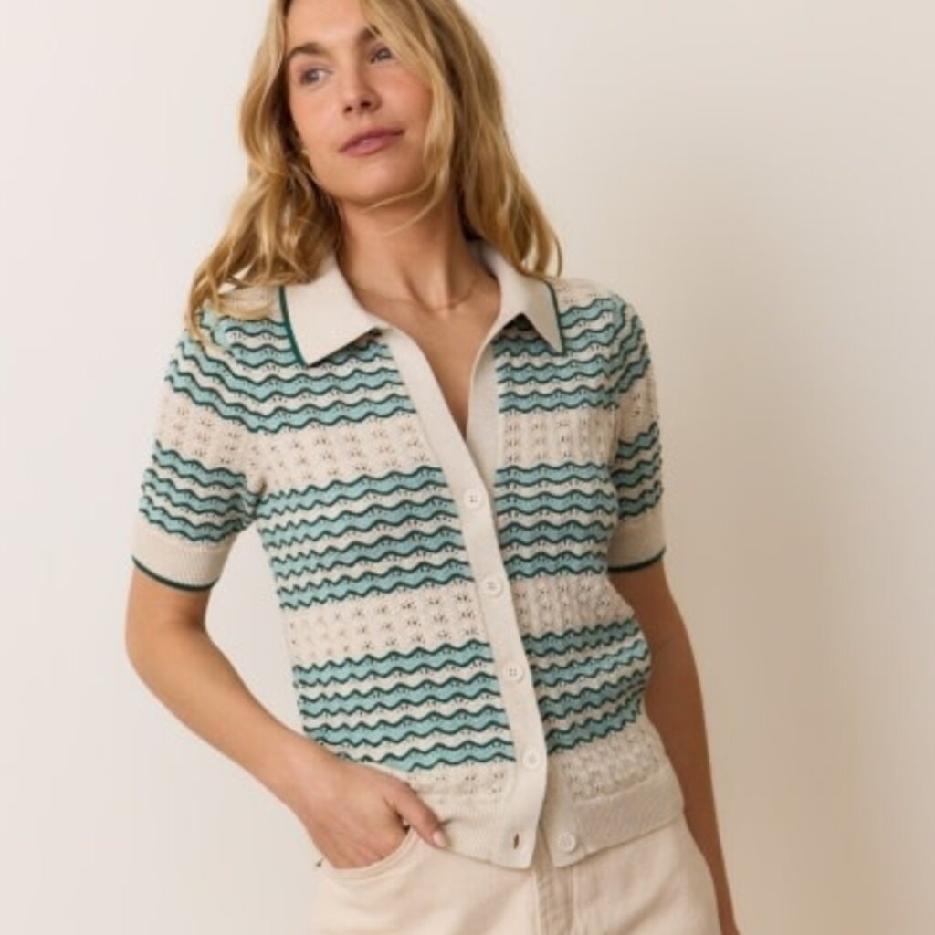 100% cotton with pointelle stitching brings the vintage flair, airy yarns keep it light. Fancy-looking, secretly comfy—our kind of sweater.